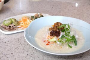豆乳と水と鶏ガラスープで担々麺風スープを作る。